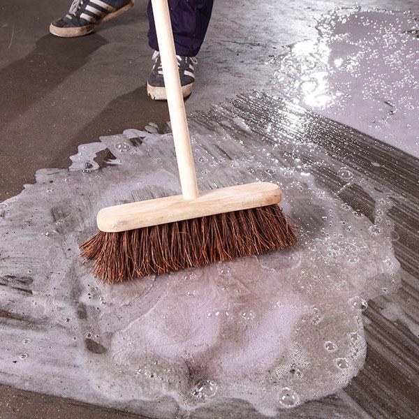 Dacă aveti pete de pamant, murdarie mai veche folositi o solutie de curatare pavaj si ciment. Umeziti suprafata, apoi aplicati prin pulverizare. Lasati sa actionize 2- 3 min, frecati pavajul cu o perie rugoasa. Clatiti cu apa.